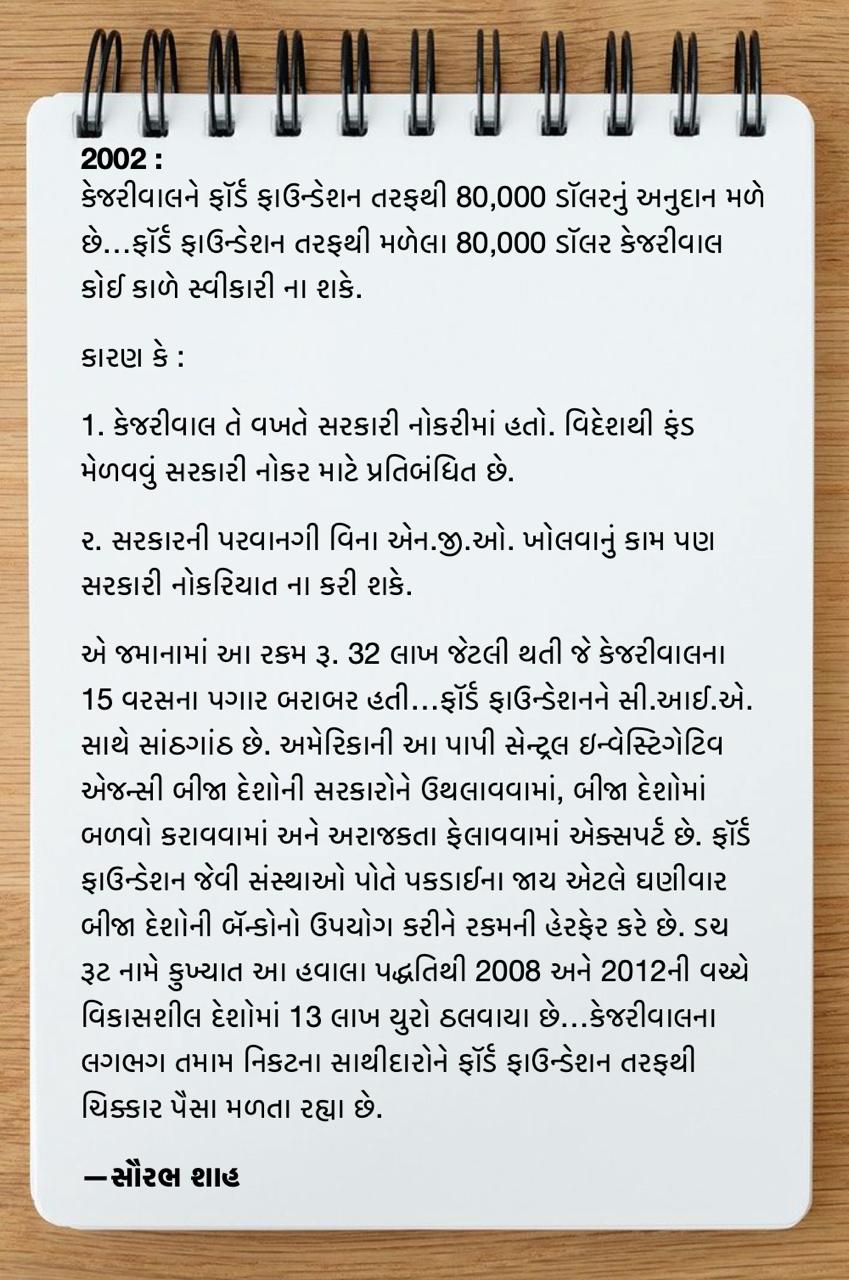 ફૉર્ડ ફાઉન્ડેશન તરફથી મળેલા 80,000 ડૉલર કેજરીવાલ કોઈ કાળે સ્વીકારી ના શકે.