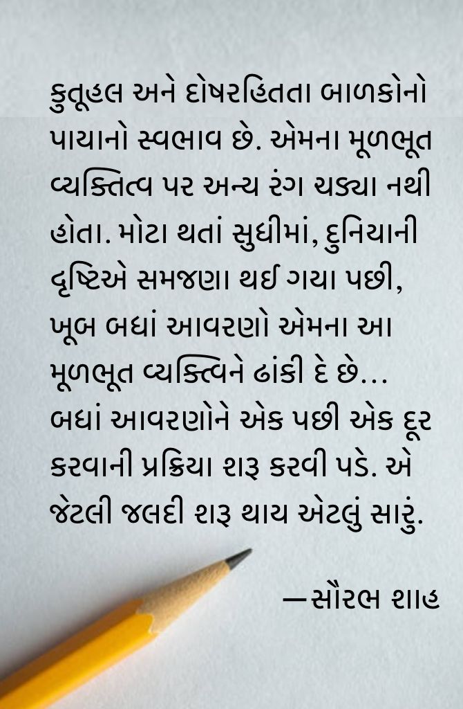 કુતૂહલ અને દોષરહિતતા બાળકોનો પાયાનો સ્વભાવ છે. એમના મૂળભૂત વ્યક્તિત્વ પર અન્ય રંગ ચડ્યા નથી હોતા. મોટા થતાં સુધીમાં, દુનિયાની દૃષ્ટિએ સમજણા થઈ ગયા પછી, ખૂબ બધાં આવરણો એમના આ મૂળભૂત વ્યક્ત્વિને ઢાંકી દે છે. દુનિયાને જો બાઝી-ચા-એ-અતફાલ તરીકે જોવાની દૃષ્ટિ કેળવવી હોય તો આ બધાં આવરણોને એક પછી એક દૂર કરવાની પ્રક્રિયા શરૂ કરવી પડે. એ જેટલી જલદી શરૂ થાય એટલું સારું. આસપાસની વિષમતાઓ, બીજાઓમાં રહેલી અટપટી અને અકળાવનારી વર્તણૂકો તથા જિંદગીના પ્રવાસમાં રોજિંદી બની ગયેલી તડકીછાંયડીઓ તરફ તટસ્થ રહેવાનો એક જ ઈલાજ છે- તમારે તમારી પોતાની વિષમતાઓને દૂર કરતાં જવું. માણસ અંદરથી જેટલો સરળ બને છે એટલો જ એ બહારથી મજબૂત અને અભેદ્ય બનતો જાય છે.
