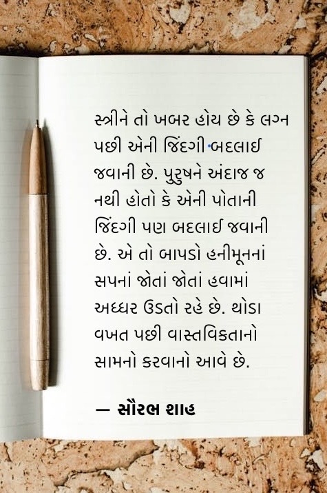 સ્ત્રીને તો ખબર હોય છે કે લગ્ન પછી એની જિંદગી બદલાઈ જવાની છે. પુરુષને અંદાજ જ નથી હોતો કે એની પોતાની જિંદગી પણ બદલાઈ જવાની છે. એ તો બાપડો હનીમૂનનાં સપનાં જોતાં જોતાં હવામાં અધ્ધર ઉડતો રહે છે. થોડા વખત પછી વાસ્તવિકતાનો સામનો કરવાનો આવે છે. પહેલાં આશ્ર્ચર્ય, પછી મૂંઝવણ અને છેલ્લે ફ્રસ્ટ્રેશન પ્રવેશે છે. લગ્નના પેકેજ ડીલમાં આ બધું તો એક્સપેક્ટ નહોતું કર્યું. કંકોત્રીમાં કોઈએ ફુદડી મૂકીને શરતો લાગુ લખ્યું હોત તો છેલ્લી ઘડીએ ચેતી જાત. પણ કોઈએ એને જિંદગીમાં આવનારાં પરિવર્તનો અને સમાધાનો વિશે ચેતવણી નહોતી આપી. મિત્રો, મૂવીઝ, નવલકથાઓ-બધાએ લગ્નનું ગુલાબી ચિત્ર દેખાડ્યું હતું.