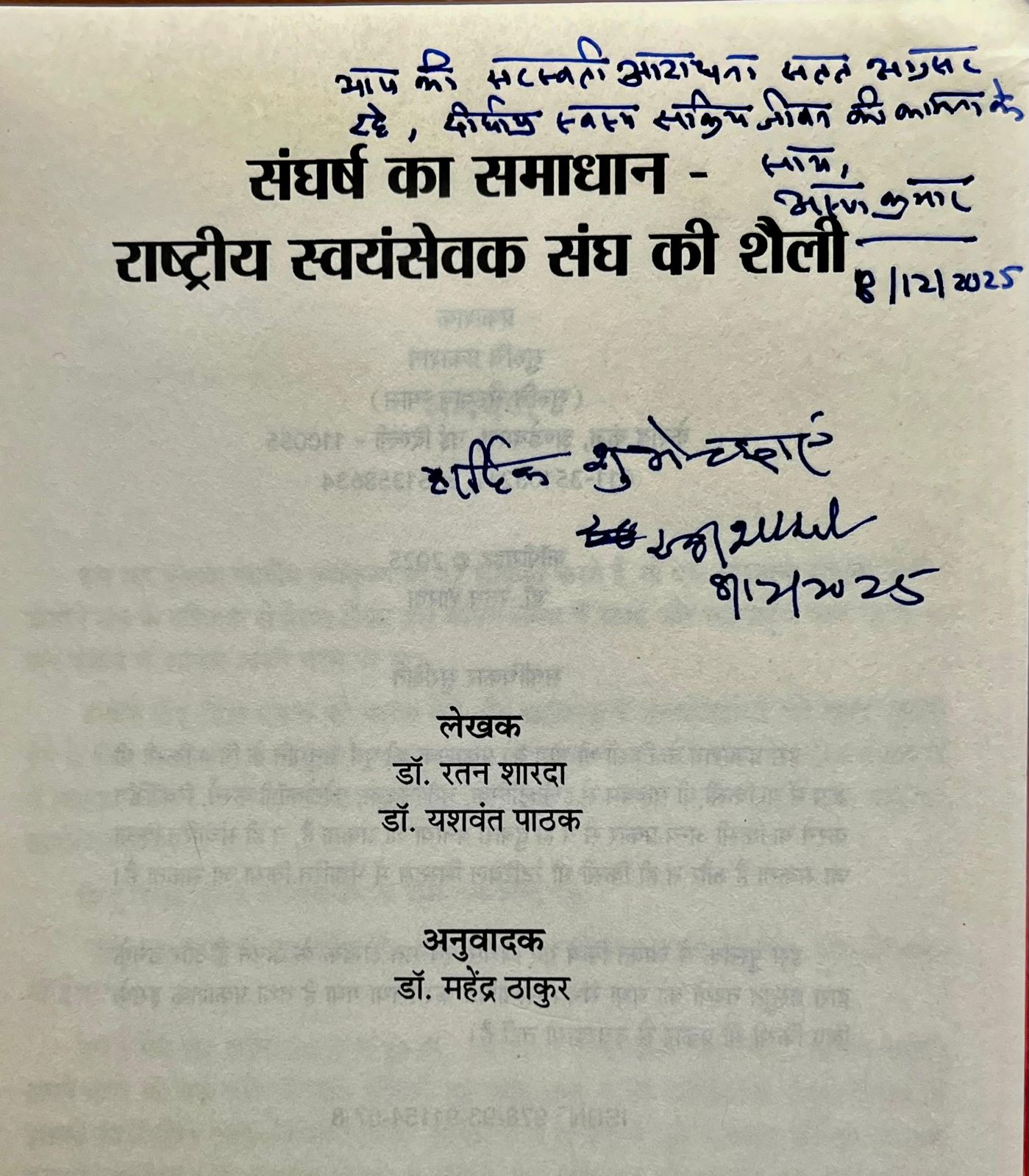 એક મજાની વાત થઈ. અમારી સાથે મારા પરિવારના સભ્યો ઉપરાંત મારા મિત્ર રતન શારદા પણ ઉપસ્થિત હતા. શારદાજી મારા ઘરથી પાંચ મિનિટના વૉકિંગ ડિસ્ટન્સ પર હીરાનંદાનીમાં રહે છે. એમના બેસ્ટ સેલર પુસ્તક ‘કૉનફલિક્ટ રિઝોલ્યુશન : ધ આરએસએસ વે’ના હિન્દી અનુવાદનું લોકાર્પણ થોડા સમય પહેલાં અરુણકુમારજીએ કર્યું હતું. શારદાજીએ આ પુસ્તકનો ઉલ્લેખ કરીને મને કહ્યું કે : હું તમને મોકલીશ.