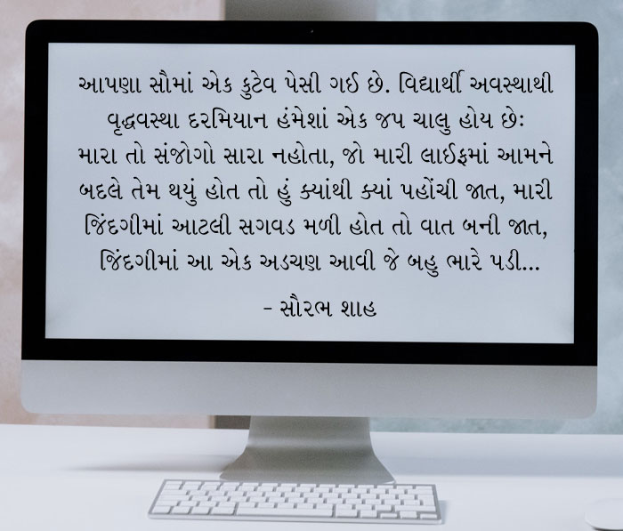 આપણા સૌમાં એક કુટેવ પેસી ગઈ છે. વિદ્યાર્થી અવસ્થાથી વૃદ્ધવસ્થા દરમિયાન હંમેશાં એક જપ ચાલુ હોય છેઃ મારા તો સંજોગો સારા નહોતા, જો મારી લાઈફમાં આમને બદલે તેમ થયું હોત તો હું ક્યાંથી ક્યાં પહોંચી જાત, મારી જિંદગીમાં આટલી સગવડ મળી હોત તો વાત બની જાત, જિંદગીમાં આ એક અડચણ આવી જે બહુ ભારે પડી…