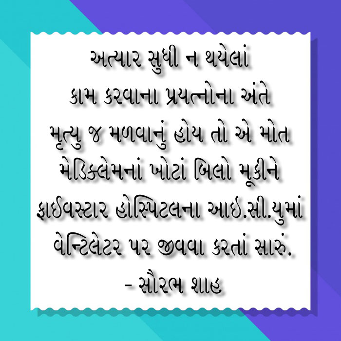 તમારી જિંદગી હિલેરી જેવી નહીં પણ મેલરી જેવી પુરવાર થાય તો ભલે. અત્યાર સુધી ન થયેલાં કામ કરવાના પ્રયત્નોના અંતે મૃત્યુ જ મળવાનું હોય તો એ મોત મેડિક્લેમનાં ખોટાં બિલો મૂકીને ફાઈવસ્ટાર હોસ્પિટલના આઇ.સી.યુમાં વેન્ટિલેટર પર જીવવા કરતાં સારું.