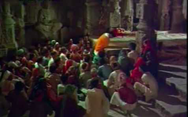 રાજુથી ઉપવાસની ભૂખ સહન થતી નથી. પરસાદની થાળીમાં પડેલાં કેળા – સાકરિયા મુઠ્ઠીમાં લે છે, છોડી દે છે. ત્યારે આ ગીત શરૂ થાય છે. ગીત પૂરું થયા પછી રાજુની મા પણ ભીડ ચીરીને એનાં દર્શને આવે છે.