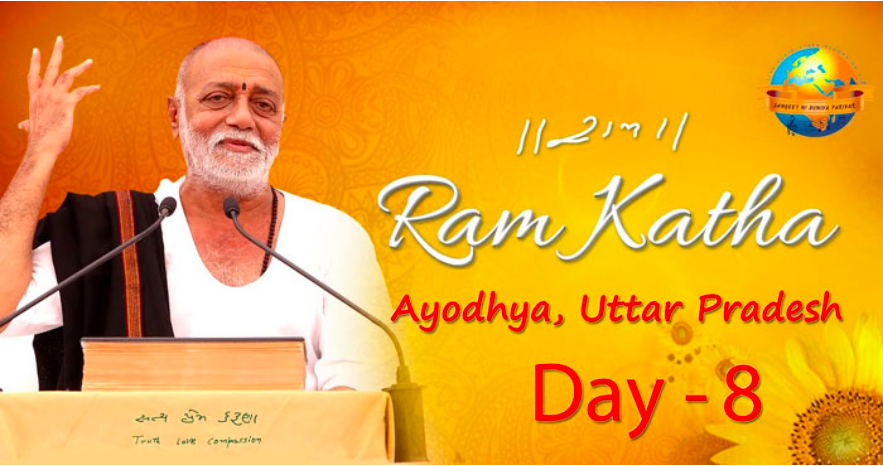 `मानस-गणिका’ के आठवें दिन की कथा के आरंभ में बापू ने आज सुबह ही ये मनोरथ व्यक्त किया. भविष्य में अयोध्या में चरैवेति कथा करनी है. चलती फिरती कथा करनी है. आज यहां तो कल वहां. पिछले साल बापू ने इसी तरह से `मानस:व्रजचौरासी’ की थी. वृंदावन में एक स्थल से दूसरे स्थल पर जाते जाते बापू ने पानीपुरी के खोमचेवाले को देखकर फोन करके कहा:`पानी पुरी देखता हूं तो आप याद आते हैं!’