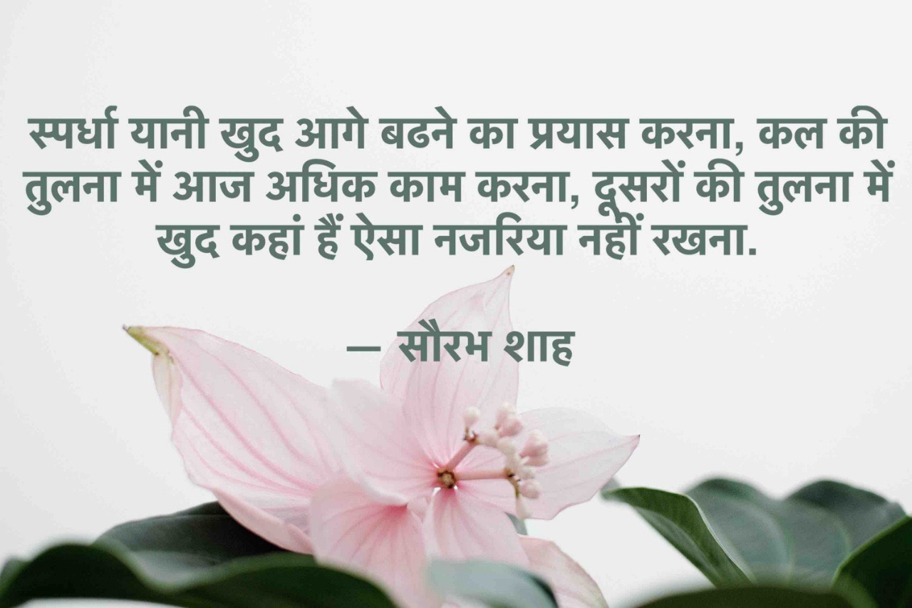 स्पर्धा यानी खुद आगे बढने का प्रयास करना, कल की तुलना में आज अधिक काम करना. दूसरों की तुलना में खुद कहां हैं, ऐसा नजरिया नहीं रखना.
