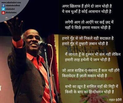 सीएए और एनआरसी के विरोध के समय राहत की एक गजल मुस्लिमपरस्तों को बहुत अच्छी लगी थी. गजल का एक एक शेर भारत विरोधियों को उकसाने के लिए काफी था: