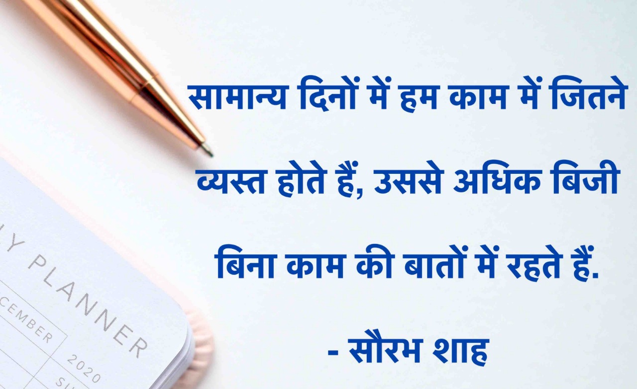 लाइफ बिजी नहीं हुई थी, हमें मैनेज करने नहीं आ रहा था. पीएम से लेकर स्वामी रामदेव, बच्चनजी इत्यादि कइयों को आप दूर रहकर देखिए तब आपको ध्यान में आएगा कि दिन का एक एक मिनट के वे ठोस उपयोग करते हैं. कोल्ड ड्रिंक की बोतल में बचे ठंडे पानी की आखिरी बूंद भी स्ट्रॉ से खींच लेनेवाले भोले बालकों की तरह ये महानुभाव दिन के अंतिम मिनट का भी अपने काम में उपयोग करते हैं. वे बडे लोग हैं इसीलिए उनका एक एक मिनट कीमती है, ऐसी बात नहीं है. उन्होंने हमेशा अपने एक एक मिनट की कीमत गिनी है इसीलिए बडे बने हैं. हमारी तरह बैठकर समय बर्बाद किया होता तो वे भी हमारी तरह ही होते. और उनकी तरह हम ने भी जीवन के हर एक मिनट का ठोस उपयोग करना सीख लिया तो हम भी उनकी तरह बन जाएंगे.