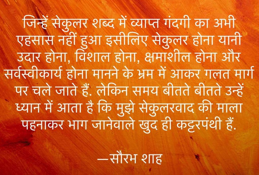 ये सब देखने-समझने के बाद `सेकुलर’ शब्द अपने आप में मां-बहन की गाली से भी ज्यादा अपवित्र लगने लगता है और कोई जब हिंदूवादी बन जाता है तब उसका हृदय परिवर्तन हो गया है, ऐसा कहा जाता है.