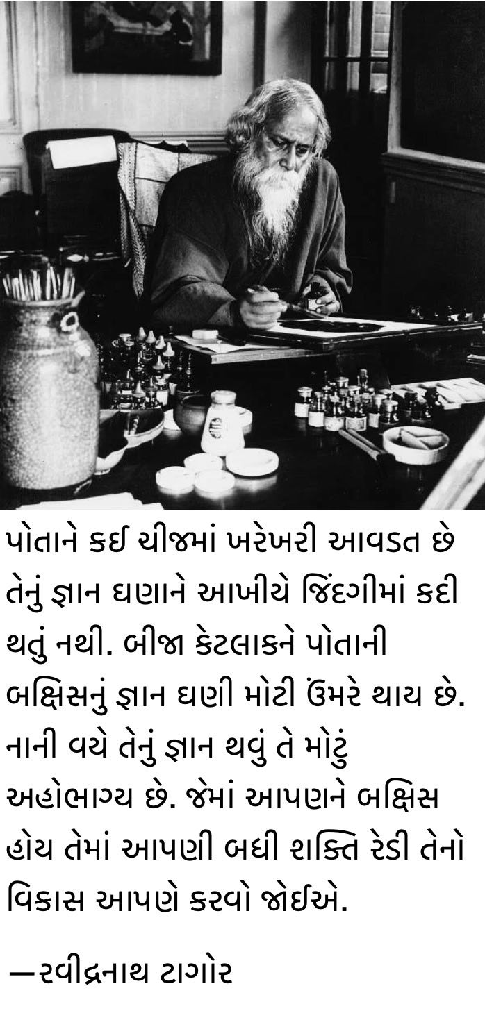 ૭ મે ૧૮૬૧ના રોજ એમનો જન્મ. એંશી વર્ષ પછી ૭ ઑગસ્ટ ૧૯૪૧ના દિવસે એમણે વિદાય લીધી. આ આઠ દાયકામાં રવીન્દ્રનાથ ટાગોરે ભારતીય કળા અને સાહિત્ય જગતમાં જે ઉમેરો કર્યો છે તે કરવા માટે અન્ય કોઈ પણ સમર્થ સર્જકે ઓછામાં ઓછા સાત જનમ લેવા પડે.