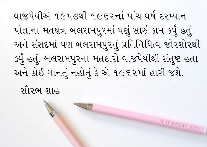 ચૂંટણીનું પરિણામ આવ્યા પછી અનેક મતદારોએ વાજપેયીને કહ્યું કે અમે તો તમને મત આપ્યો હતો, તો તમે હારી કેવી રીતે ગયા? કૉન્ગ્રેસ મતદાતાઓમાં ભ્રમ ફેલાવવામાં કામિયાબ રહી હતી. મેં નક્કી કર્યું કે પાંચ વર્ષ પછી હું ફરી બલરામપુરથી જ ચૂંટણી લડીશ અને જીતીશ.