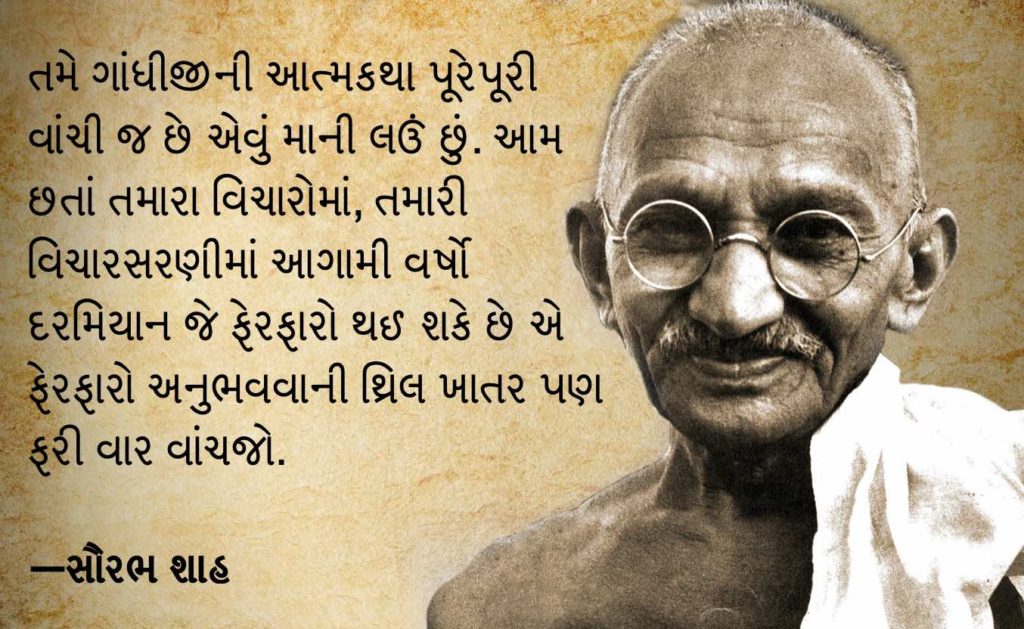 ગાંધીજીની ખ્યાતિને કારણે એમની આત્મકથા એટલી જાણીતી બની છે કે કોઈપણ નૉર્મલ વાચક પોતે આ આત્મકથા પૂરેપૂરી કયારેય નથી વાંચી એવું પ્રગટ કરતાં સંકોચાય. હકીકત, મોટાભાગે, એ હોય કે શાળા જીવન દરમિયાન આત્મકથાનાં બે-પાંચ પ્રકરણો પાઠયપુસ્તકમાં છપાયાં હોય એટલે વાંચવા પડયાં હોય. એ ઉપરાંત કેટલાક છૂટાછવાયા કિસ્સા કયાંક ટાંકવામાં આવ્યા હોય તો તે વિશેની જાણકારી હોય. પ્લસ એટનબરોની ફિલ્મ જોયેલી હોય.
