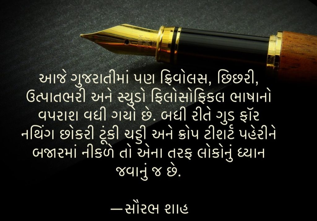 i have nòticed one thing when you talk tomaharastrisn they speak marathi never usr english word above article saurabh bhai used good for nothing……walk with time don’t critocize; eveluate try to write in gujarati without using other language word that will be bigest service to m9nther tounge