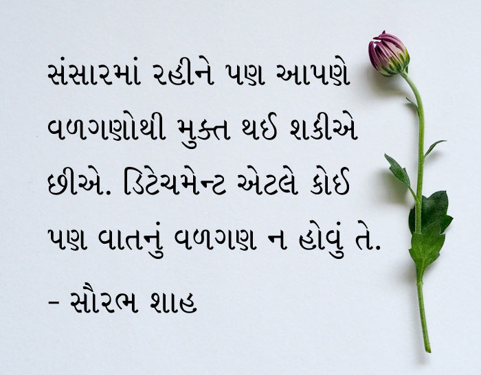 સંસારમાં રહીને પણ આપણે વળગણોથી મુક્ત થઈ શકીએ છીએ. ડિટેચમેન્ટ એટલે કોઈ પણ વાતનું વળગણ ન હોવું તે. પૅશન જુદી વસ્તુ છે. પૅશન હોવું જોઈએ લાઈફમાં પણ સાથે ડિટેચમેન્ટ પણ હોવું જોઈએ. જરા વિગતે સમજીએ.