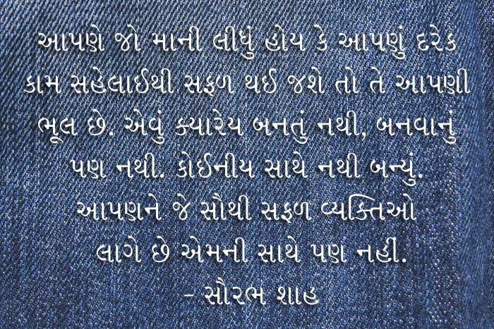 સફળ ગણાતા લોકોની નિષ્ફળતાઓનો અંદાજ આપણને નથી. એમણે ભોગવેલી ઘોર યાતનાઓ, ચિંતાઓ, વિટંબણાઓની વિગતવાર વાતો આપણા સુધી પહોંચી જ નથી હોતી. સ્ટ્રગલની જે કંઈ થોડીઘણી વાતો પહોંચતી હોય છે એ બધી રોમેન્ટિસાઈઝડ્ હોય છે, સોફ્ટ ફોકસ લેન્સથી એની તસવીરો લેવાઈ હોય છેઃ મ્યુનિસિપાલિટીના દીવા નીચે ફૂટપાથ પર બેસીને અભ્યાસ કર્યો, બે જ જોડી કપડાં – એક પહેર્યાં હોય બીજાં ધોઈને સૂકાતાં હોય, ઉઘાડા પગે ધોમધખતા તડકામાં શાળાએ જવું પડતું, મુંબઈ આવીને રેલવે પ્લેટફોર્મ પર સૂઈને રાતો ગુજારી વગેરે. આ બધી વાતો જરૂર સાચી હશે પણ આ સિવાયની ઘોર સંઘર્ષની કેટકેટલીય વાતો એમણે આપણા સુધી નહીં પહોંચાડી હોય અથવા એમનાથી નહીં પહોંચી શકી હોય. સંઘર્ષના એ કાળમાં કેટલાકે એમના પગ તળેથી જાજમ ખસેડી દીધી હશે, કેટલાકે દગોફટકો કર્યો હશે, કેટલાકની સાથે એમણે પોતે દગો કર્યો હશે. સફળ પુરુષોની નિષ્ફળતાઓની ગાથા ધરાવતું કોઈ પુસ્તક બહાર પડે તો જ આ બધી વાતોની ખબર પડે. પણ કોઈ કરતાં કોઈ સક્સેસફૂલ વ્યક્તિ સફળ થયા પછી તદ્ન નિખાલસ બનીને પોતાના ખરાબ પિરિયડ વખતની પોતાની માનસિકતા વિશે વાત કરતી જ નથી, કરી શકે પણ નહીં કારણ કે પૂરી સચ્ચાઈથી એવું કરવા જાય તો એમની ઈમેજમાં ગાબડાં પડે, એમની સફળતામાં છુપાઈ ગયેલા એમના વ્યક્તિત્વના ડાઘ ઉઘાડા પvડી જાયv.